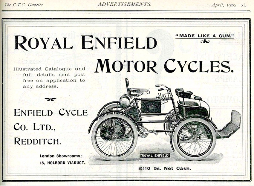 Nottingham to Marble Arch via Northampton (a run of 124 miles). There was also a champagne breakfast hosted by Viscount Northcliffe at Calcot Park, Reading; a dinner at the Birmingham Conservative Club hosted by Alfred Bird, MP; and other social events at Manchester and Edinburgh.The 1,000 Mile Tour was designed to publicise motoring and in that it succeeded. Thousands of spectators lined the route; most of them seeing motorised vehicles for the first time. The towns they passed through were packed, to the extent the vehicles had trouble passing through them. The show days were essential for running repairs. The survivors in the (almost) motor cycle class were the Ariel quad, the Ariel trike and trailer, the Century tandem, the Empress trike and the Enfield quad. CS Rolls won the speed trial in his 12hp Panhard at 37.63mph which was officially the fastest vehicle in England— a De Dion-Ariel trike and trailer came fourth at 29.45mph. And on Birkhill, acording to Autocar, “the Ariel quadricycle, Ariel tricycle with trailer, Enfield quadricycle, and Mr Rolls’s Panhard achieved the same result.” So while solos were not yet up to such a demanding event, the trikes took on the best automobiles and gave a taste of triumphs yet to come.