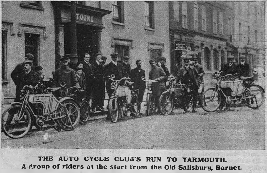 “MOTORCYCLISTS AND THOSE interested are joining the Auto-Cycle Club in large numbers, nearly 40 new names having been proposed at the last two meetings. Rather a pleasant feature of the applications is the fact that a large proportion emanate from independent gentlemen and professional men.”
