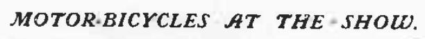 “NO ONE INTERESTED in the evolution of the motorcycle will deny that the Show at the Agricultural Hall was a very noteworthy one, perhaps the most noteworthy of any of the series that has so far been held, and it will, I think, be of interest to give a brief summary of some of the main mechanical features of the machines exhibited, and to indicate broadly the constructional tendencies of the time.