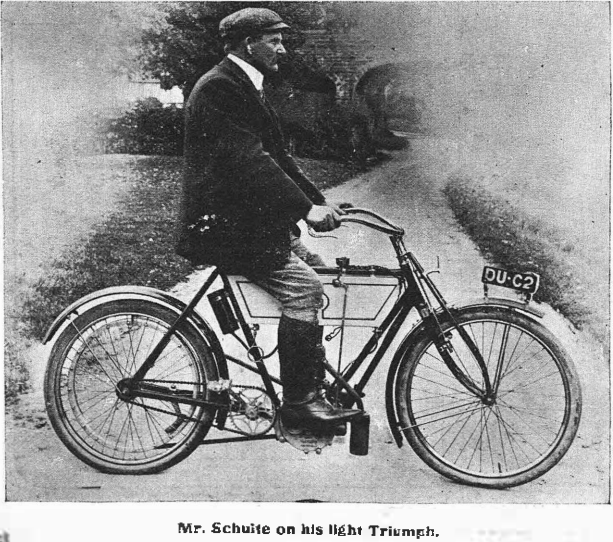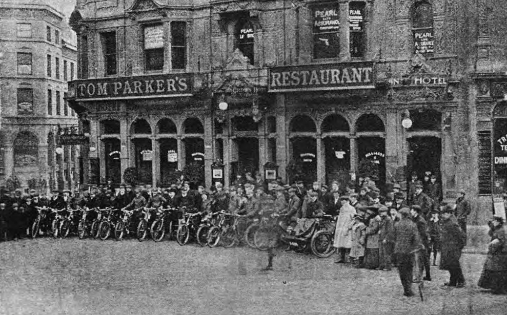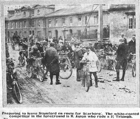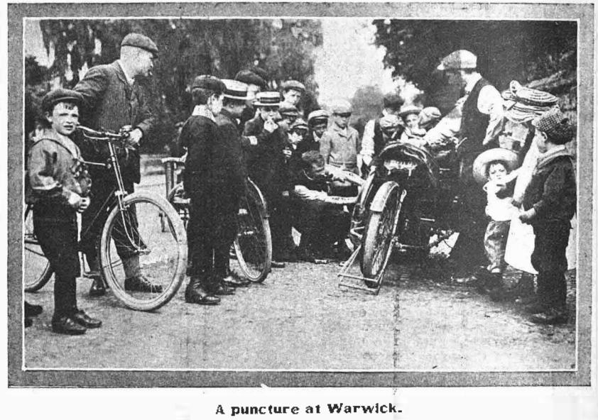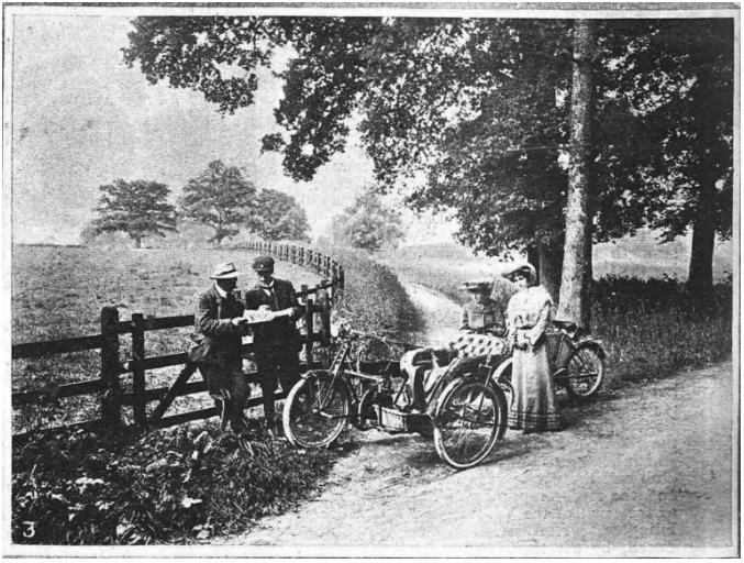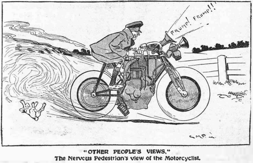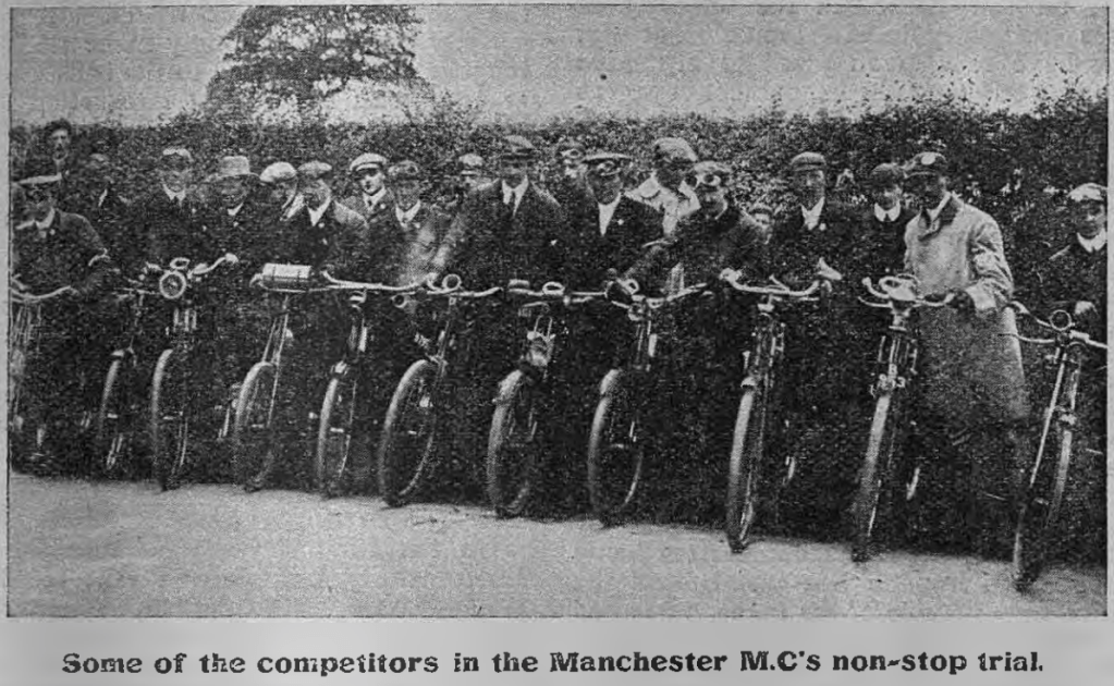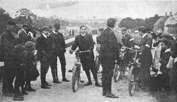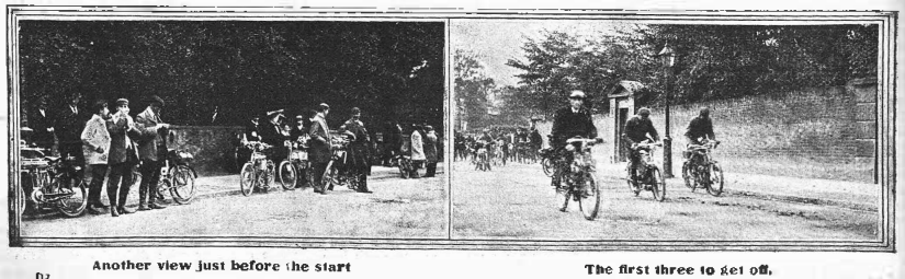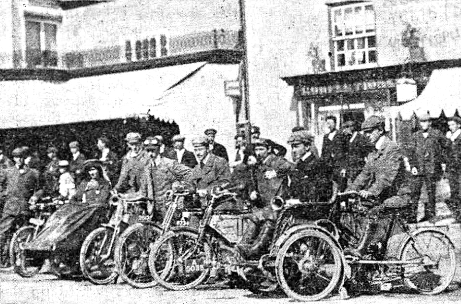 “THE SPLENDID WEATHER last week resulted in a large number of motor cycles coming out on the roads around London. Even up to the small hours the roads resounded with the merry teuf-teuf of motors large and small.”