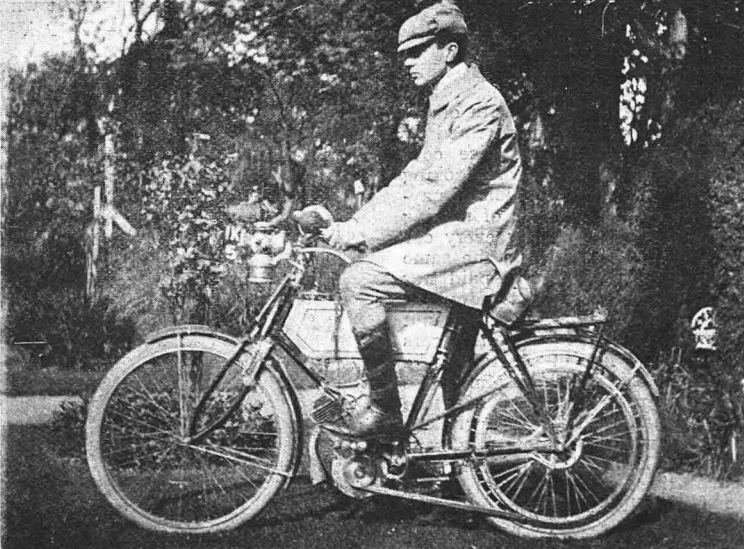 “THE HEAD OF THE New York police force, Police Commissioner McAdoo, is well pleased with the tests of a new 2¼hp motorcycle weighing 98 pounds, which has been subjected to some very severe tests. The Commissioner will ask for sufficient money to equip the entire bicycle squad with these machines, which are particularly useful in overtaking speedy autos and their reckless drivers. This new cycle is said to be able to develop a speed of 53mph.”