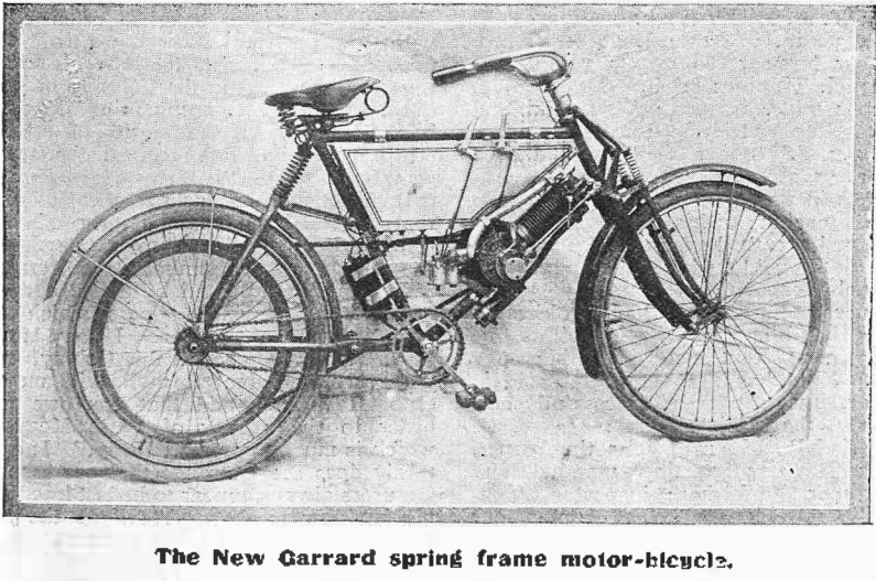THE MOTOR MAGAZINE (INCORPORATING Motor Cycling) commissioned “a special lightweight touring motor-bicycle…to demonstrate that a type of motor-bicycle alternative to existing types is quite practicable…There are a large number of would-be motorcyclists to whom the powerful and necessarily very heavy machine does not appeal…to jump from 26lb to 170lb or so is too big a step…Our ideal has been to have a machine constructed that would have an engine developing a full 2hp and scaling between 70 and 80lb minus petrol and accessories. By suitably proportioning the parts and introducing one or two innovations, chief of which is the employment of the metal aluminium where possible, we have obtained a mount scaling 78 1/2lb, having a solidly constructed frame, equipped with strong tyres, two brakes, two accumulators, wide mudguards and large petrol capacity.” The 169cc lump weighed 19lb and developed 2.35hp at 2,500rpm. The cylindrical fuel/oil tank was aluminium and gave a claimed range of 150/450 miles. “This is the first aluminium tank ever fitted to a motor-bicycle.” The spray carb and mudguards were also aluminium. The accumulators were said to supply sparks for “easily 550 miles”. Brakes (Crabbe Special front, Garrard Moderatum rear) were said to hold the bike on a 1 in 7. “In actual running there is a marked absence of vibration, due to the high-speed engine, large flywheel and extra wheelbase. The pace on the level is ample to satisfy even a fastidious tourist…the stiffest climbs on the Brighton Road were surmounted with ease, the merest touch of the pedals on one or two occasions alone being necessary. Our designs and suggestions have been carefully carried out by the makers, Messrs Garrard, of Birmingham, and we think from the foregoing it is clear that the 80lb touring motor-cycle can be made…The manufacturer has, up to the present, we maintain, entirely a large class of possible customers, who want a machine that can be handled with an ease in some degree approaching that of the pedal cycle. The market for the high-powered and heavy mount will always be a good one we admit. This is the class of machine for the riders of above the average weight, and who wish to make a high average speed…There is a threadbare argument continually put forward by the upholders of the ‘weight-at-any-price’ theory, and that is that there are at this present moment hundreds of 2hp motor-bicycles throughout the manufacturers’ depots that no one will have. The explanation is a simple one, and it is this.