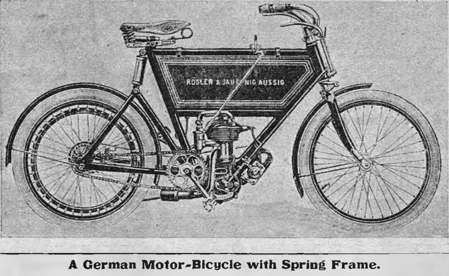“THE SPRING FRAME models at present on the market have met with much favour, and used over fairly good roads prove a luxury; over the majority of town roads, where one’s pace is lessened to a degree, an appreciable difference is found.”