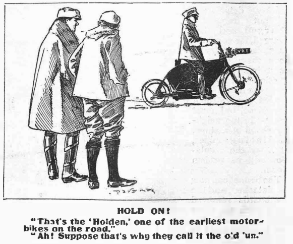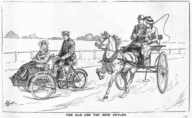 “WE ARE INFORMED that a young-man is doing good business at one of the South Coast-resorts with a motor cycle and forecar, by conveying passengers for short trips in the locality for a small fee.”
