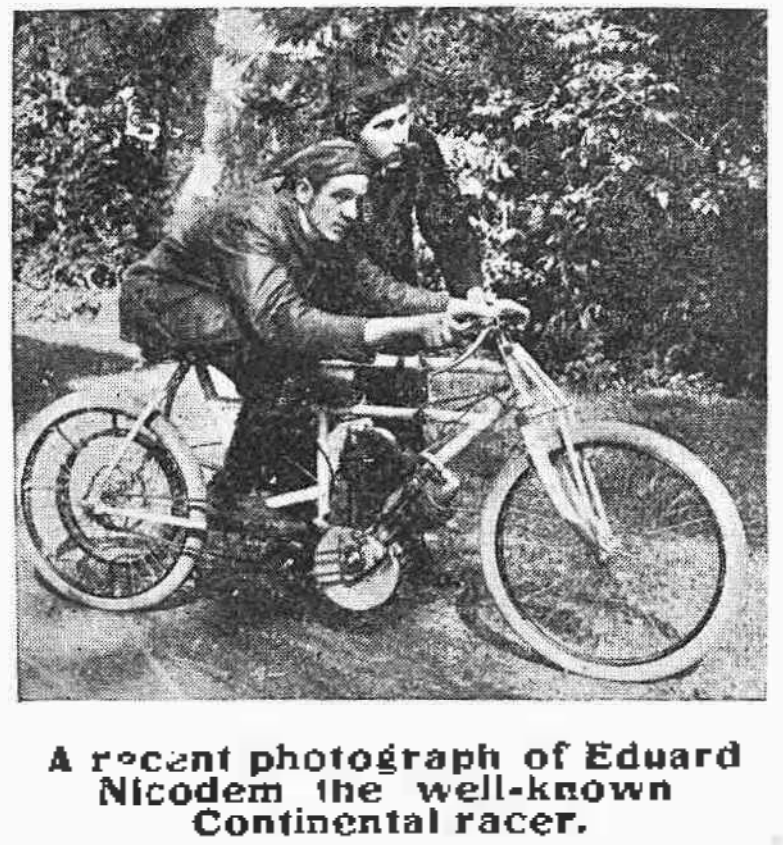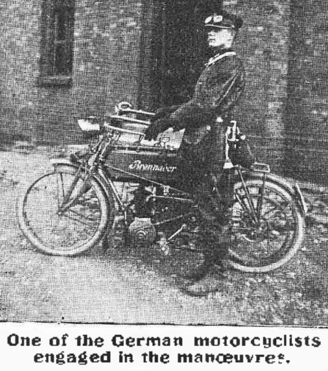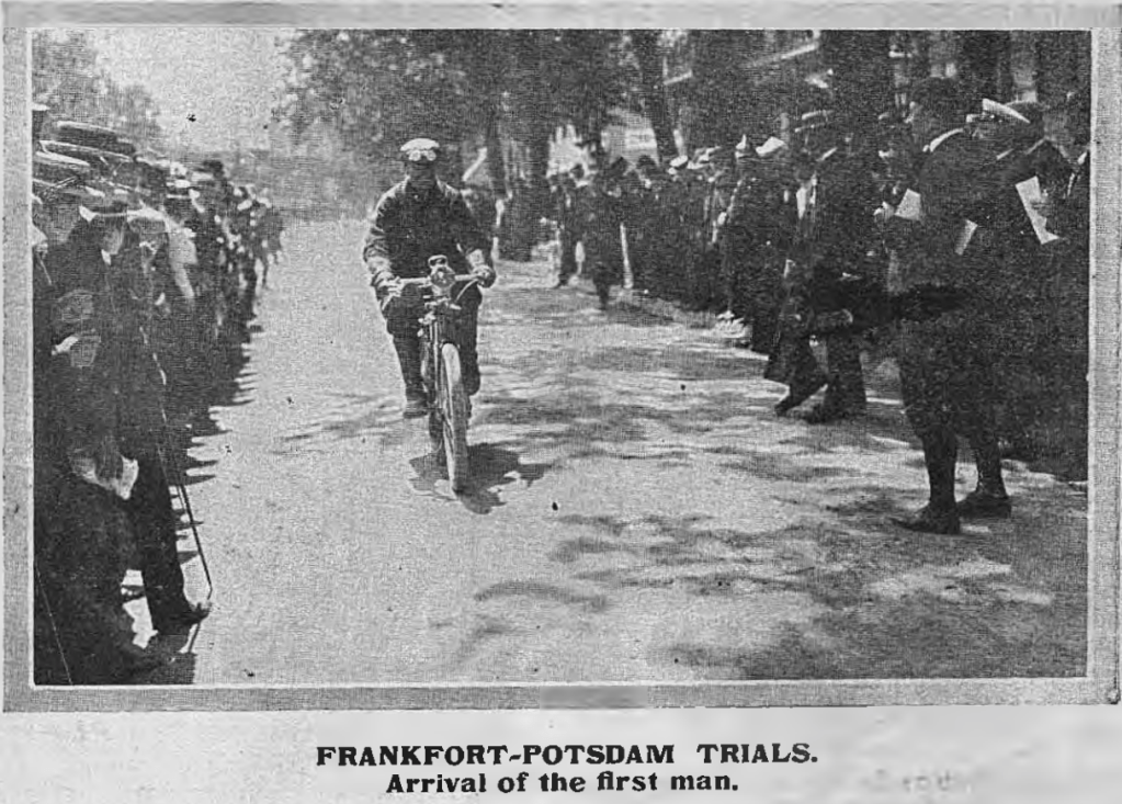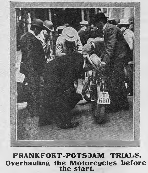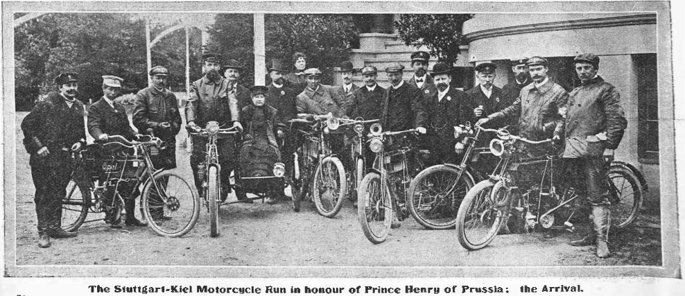 “PRINCE HENRY OF PRUSSIA recently accepted an honorary membership in the German Motor Cyclists’ Association (Deutsche Motorradfahrer-Vereinigung), with headquarters at Stuttgart, and the committee have resolved to thank him for his acceptance in a message to be sent by relays of motorcyclists from Stuttgart to Kiel, a distance of 850 kilometres.”