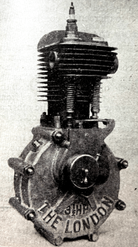 “The illustration depicts the 4½hp 82x86mm [454cc] White and Poppe engine, a size specially adapted for tri-car work. It is water-cooled and has mechanical valves. The design is according to the best practise, and a special feature is the excellent finish of every part.”