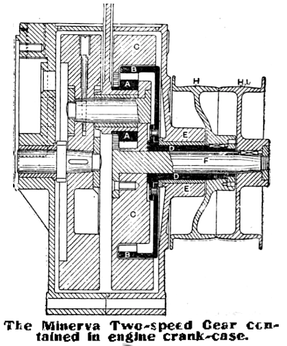 THERE CAN BE NO question that the success of the two-seated motorcycle—be it fore-car, side-car, or tandem—very largely depends on the application of a two-speed gear that will have the essential features of high efficiency as a piece of mechanism, long life, and wearing capabilities, compactness, minimum weight, least possible number of parts, and non-liability to derangement. It is not a little surprising that such comparatively small progress has been made in the direction of adapting two-speed gears, the more so when one considers that some very practical variable speed gears are in use on ordinary cycles.”