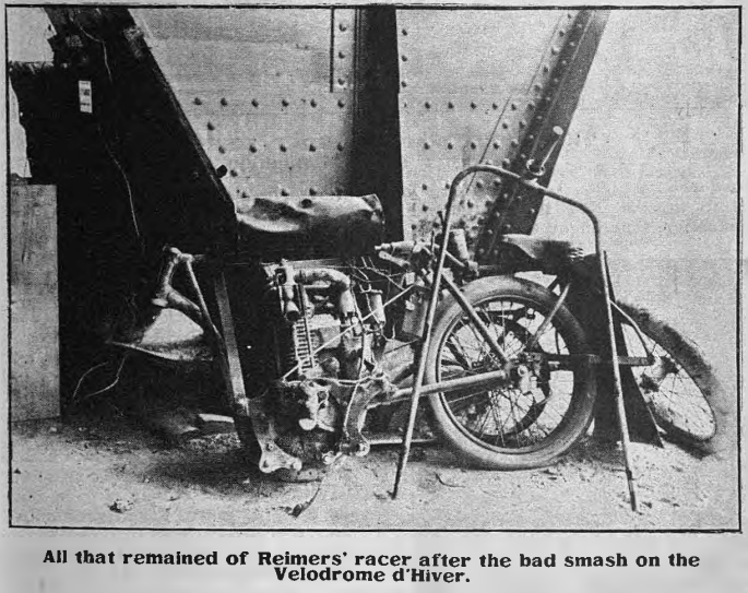 “LANFRANCHI, THE CRACK motorcyclist who holds the standing start world’s mile motorcycle record at 57⅘sec, and the flying kilometre at 29⅕sec, is still confined to his bed at the Boucicaut hospital, but is making very satisfactory progress. It will be remembered that he fell while travelling at the rate of 60mph in a race at the Velodrome d’Hiver on November 6th.”