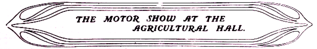 Here are some of the ads that accompanied the Motor Show at the Agricultural Hall, Islington: