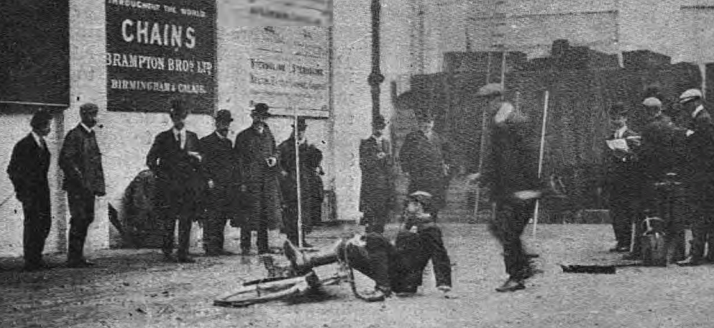“ON MONDAY AFTERNOON a motorcyclist named G. A. Smith, of Wandsworth Common, was found lying insensible beside a wrecked motorcycle near Beddington station. At the hospital he was found to have sustained concussion of the brain. A dog is surmised to have been the cause.”