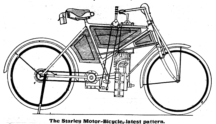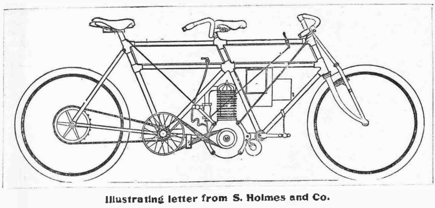 “LOOKING AT THE CYCLOMETER on the experimental motor-bicycle I note it reads 1,130 miles. This is the total distance accomplished on the machine since it materialised in practical form. I cannot help thinking that here is striking testimony that the machine has stood the test of hard practical work. The false prophets and critics, who, by the way, in nine cases out of ten, have no practical knowledge of the subject they write about, are completely out of their reckoning. The frame and tanks should have gone to pieces, the engine was a mere toy, the vibration would be terrific, and so forth. Let it be said that not a screw, nut, or any detail about the machine has given a moment’s worry. The light clincher tyres have, not punctured once, and beyond a surface scratch or two on the back cover, the tyres are just as good as when new. During the recent spell of fine weather I accomplished over 700 miles on this mount, and I can safely say I have never been on a machine which has given more pleasure in the riding. Beyond filling up the petrol tank and having an occasional look at the contact maker it has been unnecessary to touch any part of the machine. The Lycett two-ply belt keeps at a perfectly even tension, and has not been off the pulleys. To keep it thoroughly flexible I have occasionally brushed a coating of oil on the top layer. Now as to the speed and hill-climbing powers of the machine. On a dead level and deserted stretch of the Ripley road I satisfied myself that the machine would easily touch 30mph, and I have not yet come across a hill on my journeys which has necessitated walking up. Eight out of 10 hills I have had to negotiate the machine has gone up without a turn of the pedals being requisite. As far as I have been able to estimate by repeated trials, the steepest gradient the machine will climb unaided with my weight (10 stone 6lb) is 1 in 9.5…My trips have been along the Brighton and Eastbourne roads, the South Coast as far as Portsmouth, then across country via Newbury to Oxford and back to London through Henley. Shorter trips have been along the Ripley, Bath, and Coventry roads, so that roads of a fairly average character have