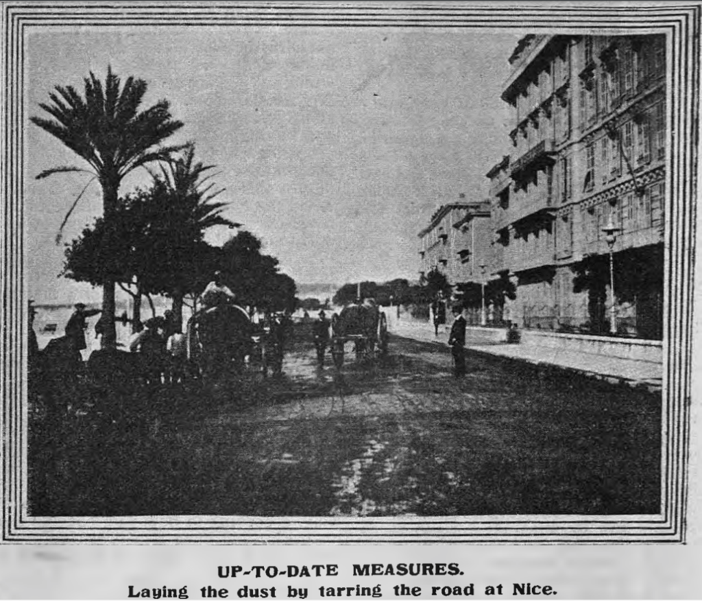 “EXPERIMENTS FOR THE prevention of dust are being carried out in many parts of the country by painting the surface with tar, or sprinkling with oily compounds. Some of the processes are said to be successful, but very costly, and it is questionable if they can be undertaken on a large scale within a reasonable expenditure except in very populous districts.”
