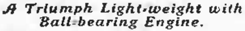 “THE LIGHT-WEIGHT MACHINE. I read with interest the article on the Torpedo light-weight bicycle. I fully agree with it, so far as the need for a light-weight motor-bicycle, fully capable of all-round work, is concerned. For some time I have been on the look-out for such a mount, with easy starting. My experience of the 2hp C-Garrard engine left much to be desired in this particular respect, and two of my friends found the same fault. I think their make and break contact is a very poor system, but in your machine the trembler coil and rotary contact may have remedied this fault. I should be glad to know if it has. Two years back I had a small 1¼hp FN machine, and for ease of starting and general all-round usefulness I have never had anything like it. One slight push and it was off. The 2hp FN of last year was also good, though nothing to compare with the 1¼hp of the year before. The small 1½hp Quadrant was also a good starter; but my last mount, the 2¾hp Werner, until I put an automatic carburetter, brush contact with high speed coil, and did away with the compression lever, etc, by fitting an exhaust valve lifter, sorely tried my temper. This fault of the Werner no doubt lost it the speed contest in the Phoenix Park last year in the Gordon-Bennett Week, as the rider could not get the machine going for some 100 yards. I have come to the conclusion, after three years’ experience with nearly every make and power, that the heavy high-powered engine is a mistake. If you must have big horse-power for fore-car work, build it in one, the same as the Rex and Century people are doing, and have water-cooling; otherwise, in my opinion, the fore-car is not satisfactory; and, personally, I have discarded it for the small car after nine months’ trial with a 3½hp, air-cooled, and a 3¾hp (full) water-cooled engine, the fore-car not being built along with the machine.
