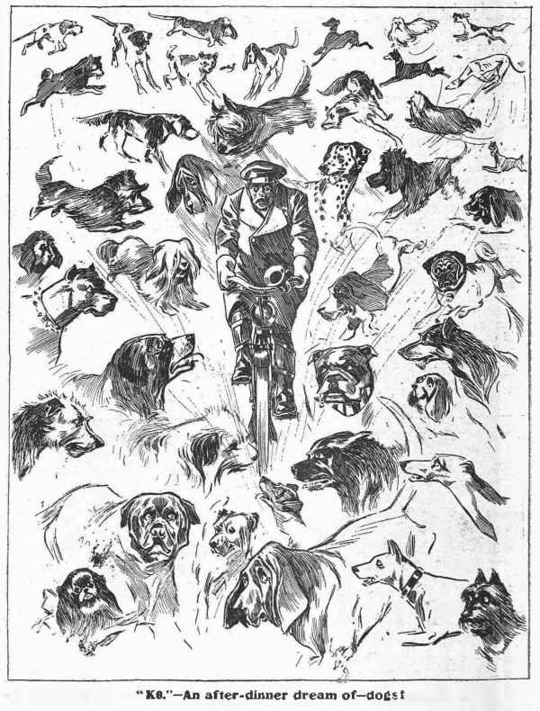 “DOGS APPEAR TO BE doing deadly work just now, but when a motorcyclist is brought over by a dog it is never a dog peril: only a ‘motor peril’.”