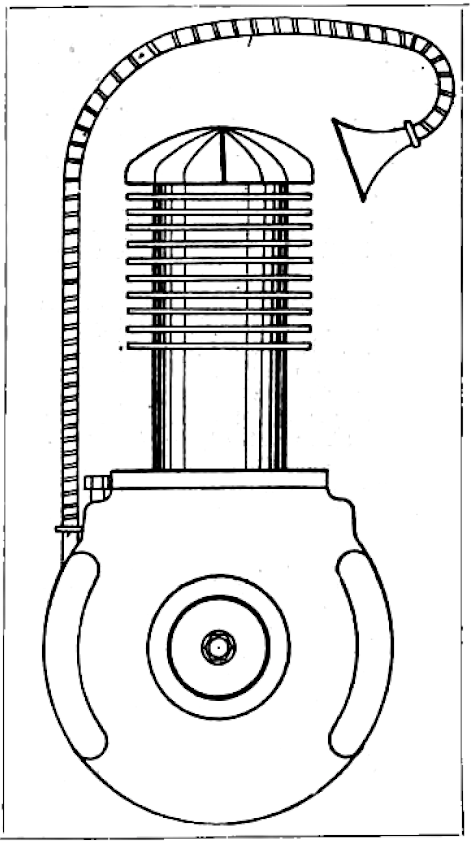 “MESSRS JOHN CHAPMAN & CO, of 18-22, Fann Street, Aldersgate Street, London, EC, are displaying a couple of novelties in the shape of an expanding pulley for motorcycles and an enclosed fan for air-cooled motors. The pulley is expanded or contracted by the movement of a single lever, all the mechanism being contained in the pulley itself. It can be fitted in the place of any existing pulley without any alteration or disturbance. The device is well designed and most workmanlike in construction. To take up the slack of the belt when the pulley is contracted a jockey pulley is provided, and the power thus absorbed, although small, is utilised for the purpose of driving the rotary enclosed fam which projects a powerful blast of cold air on to the cylinder of the engine. The fan is most efficient and should have a large sale separately as well as in combination with the pulley.”