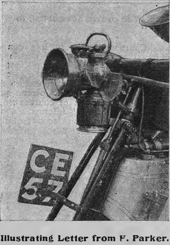 “IT IS ONLY WITHIN the last year that lamp manufacturers have put lamps on the market specially constructed for use on motor cycles, but nothing certain is known about their usefulness. All lamp manufacturers should be invited to construct a lamp specially suitable, and these should be tested by an impartial and expert body.”