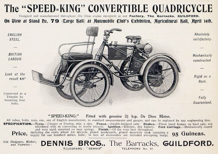 “THE GEAR DRIVEN tricycle introduced by the De Dion-Bouton Co is now almost obsolete, but similar machines can be obtained now from the Ariel Motor Co, which alone continues to manufacture a few of this pattern to order.”