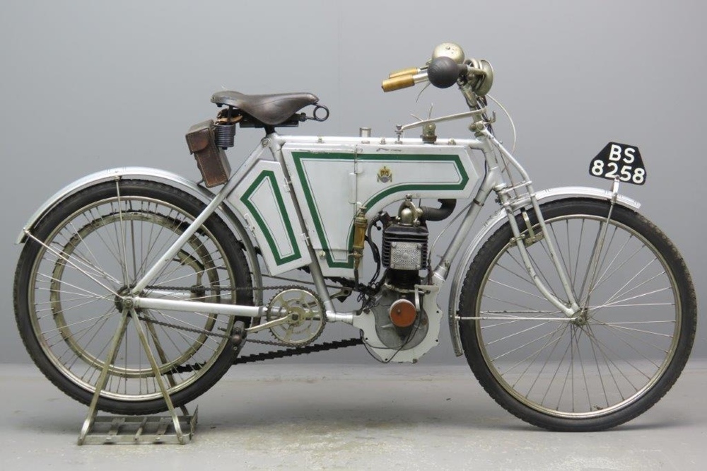 “AT A RECENT AUCTION sale at a London Mart some thirty motor cycles were sold under the hammer. Over three-fourths of the number were fitted with engines of from 1¼hp to 1¾hp. This further indicates that the chief demand now is for slightly more powerful machines.”