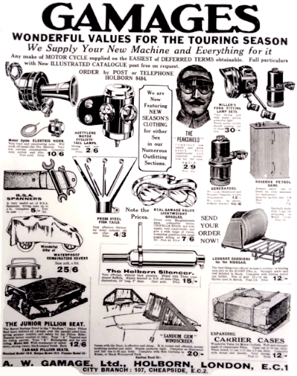 “A BOOM AMONGST ARTISANS: As I [Ixion] anticipated when the wages of a scavenger began to surpass those of a head draughtsman, the agencies are experiencing a very keen demand from artisan buyers. I rejoice that it is so. Motor cycles for the million are an integral part of an England fit for heroes to live in, and will make for more happiness than taking over a small holding with a small capital and a sublime ignorance of agriculture. It is interesting to note that the artisan novice is concentrating on one type of machine, and with comparatively few exceptions on half a dozen makes of that type. He will have next to nothing to do with anything but the three-speeded single-cylinder tourist machine of 500-600cc, and he is a shrewd judge of the best values in that line.”