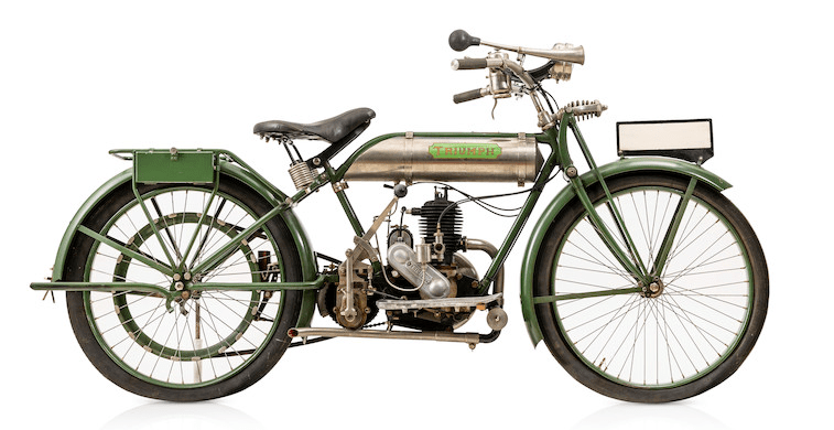 CYRIL PULLIN, WHO WON THE 1914 Senior TT on a Rudge, came up with a state-of-the-art utility bike “which, whilst possessing a pleasing and compact appearance, is at the same time simple to manage, comfortable to handle, and clean to ride on all kinds of roads by riders of either sex”. Its 216c 3hp two-stroke engine drove via a two speed box to a fully enclosed rear chain. The Pullin also featured a pressed-steel frame and forks, swinging-arm rear suspension, combined magneto and lighting generator in the flywheel, auto-lube, and QD interchangeable wheels.
