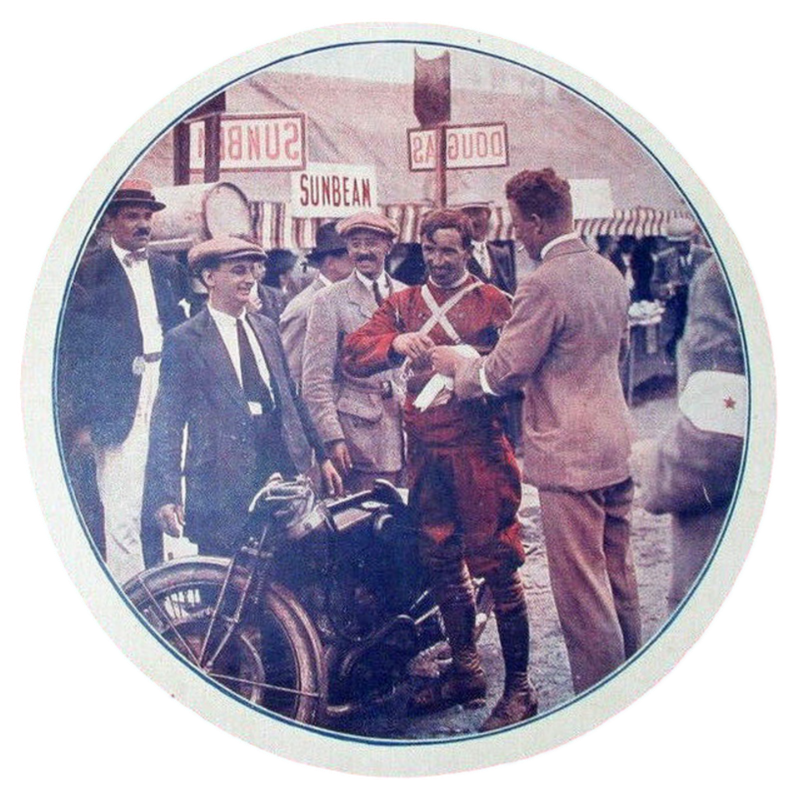 Alec Bennet and Tommy de la Hay took the top two spots for Sunbeam ahead of T Sgonina (Triumph) and a brace of Duggies ridden by FW Dixon and JL Emerson. An Alcyon won the 350cc class but Douglases came second and third. And the winning 250cc Yvel was built of British components including a JAP engine. (and until encounterung a tyre shredding flint on lap 12, A Milner led the 250cc class on his Levis), “It certainly is a wonderful old engine, this Sunbeam,” remarked Bennett, as he dismounted and wiped the oil and dust out of his eyes. It was easier to get the winner of the Grand Prix race to talk of his machine than of himself. He quickly remarked, however, “I am not an American, as some of you seem to think. I was born in Canada, raced an Indian on the Canadian tracks, came over with the Canadian Army in 1915, and, well, I married an English girl, and that is sufficient reason for staying, even if I did not like the country so well as I do. Yes. it is harder than the TT, for the speed is so consistent ; but I do not think that it requires so much skill. Undoubtedly, it is harder on the engine, for there is no ‘let up’.”