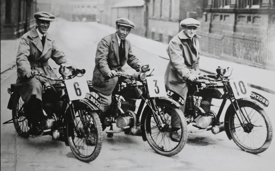 “IN SPITE OF MANY IMITATORS, the Scott trial still remains in a class by itself as regards sporting events. Perhaps the reason lies in the suitability of the country in the neighbourhood of Ilkley, or perhaps the secret lies in the cheery spirit of the organisers and the thorough sportsmanship of the Yorkshire riders who form the bulk of the entry. On Saturday last a band of some 50 optimists gathered at Otley in a drizzling mist, of whom 29 only were to survive the course, and many of these were very late. Most of the competitors were mounted on Scotts—old Scotts, new Scotts, Scott Squirrels, and hybrid Scotts—but there was a fair sprinkling of other machines. A number of machines had exhaust extensions reaching up to the carrier so as to avoid ‘drowning’ in the deep splashes. Within ten minutes of the start the riders were plunged into Dobpark splash, a deep and rocky stream, with a natural gallery for spectators in the form of a packbridge. Many, failed, to the great amusement of the onlookers, and many crossed safely to receive well-merited applause, but perhaps the best crossings were those of L Whalley (Sunbeam) and J Baker (Scott). The real hard work commenced at Grimwith Reservoir, where all signs of a track disappeared, and competitors attempted to follow a line of stakes, picking their way between boulders and bogs. This stretch culminates in a series of gulleys, the last of which formed by a stream. It was amusing to watch the set faces of the old hands as they approached the obstacle and the looks of blank amazement on the faces of those who saw the course for the first time. Some machines were already showing signs of damage, and after the long spell of low gear work many exhaust notes were distinctly fluffy. Catherick’s Dunelt had a damaged mudguard. Clapham (Scott) dashed at the obstacle and shed his saddle frame, several had missing footrests, and one carrier was adrift…Mrs Knowles, whose very sporting entry had been the subject of much comment, did not arrive, having had the bad luck to suffer from a drowned magneto…Near Grassington F Moffat (Scott) collided with a cow and retired. Darnbrook Hill was in fair condition, but, shortly after, a humorous youth nearly caused a bad accident by slamming a gate shut in the face of Capt Knowles, who was approaching at speed on his Norton…The Scar was practically unclimbable; in fact not a single rider made a really clean ascent with feet on the rests…In spite of falls, it was a cheerful group of survivors who assisted Mr N. Vinter in auctioning a programme signed by CP Wood and Mrs Knowles; the sum of nearly £5 was collected for this work of art, in aid of St Dunstan’s Hospital. Best performance of trade, CP Wood (3¾hp Scott); best performance of amateur, J Whalley (3½hp Sunbeam); best performance on a Scott, exclusive of Scott staff, G Hill (3¾hp Scott); Trade team prize, Scott team (CP Wood, H Langman and W Clough); amateur team prize, Sunbeam team (HW Sellers, AR Naylor and W Wells) club team prize, Bradford Team comprising W Moore (Scott), AR Naylor (Sunbeam) and CB Haig (Triumph); consolation prize, BH Catherick (Dunelt). The consolation prize for the man who fell off most often was indeed a trophy. It took the form of a bottle of whiskey with a