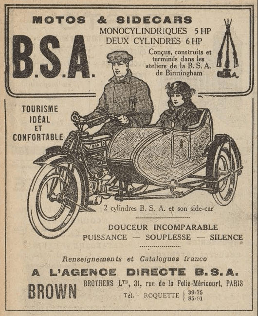 “POWERFUL MOTOR CYCLES, WITH sidecars able to carry four policemen, if necessary, are now part of the equipment of all the Paris police stations. It is anticipated that their presence in the streets will act as a deterrent to would-be infringers of the speed limit. Then, again, the perpetrators of many armed robberies have recently escaped by using motor cars, and there has been no means until now of overtaking them. The sidecars will be used also in transporting victims of street accidents to the hospitals.”