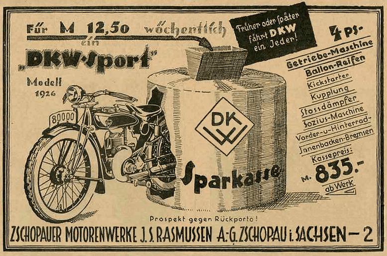 IT SAYS MUCH FOR BRITISH dominance that British bikes, engines and gearboxes were banned from the Berlin show. The German industry was expanding fast; new models included a 703cc ohv V-twin Wanderer and, shades of Scott, a 496cc vertical twin two-stroke from DKW.