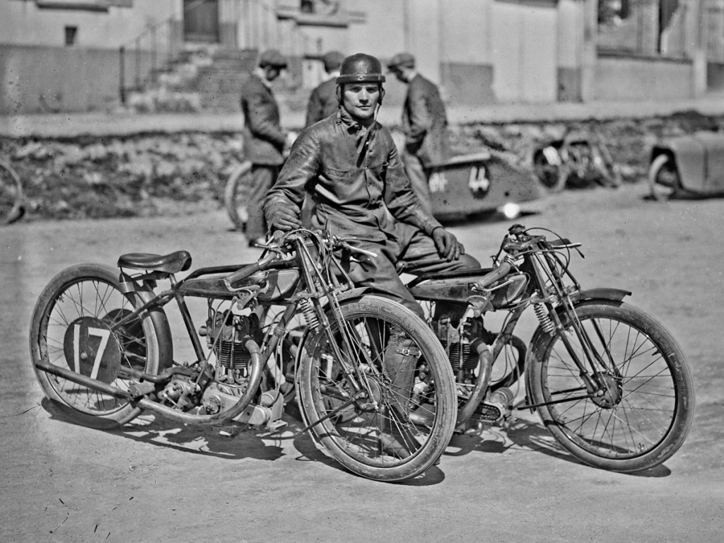 SIDECAR RACING WAS DROPPED from the TT programme. The official reason was a lack of entries but pundits suggested that manufacturers feared racing outfits would harm the image of combos as safe family transport—cars had only just outnumbered outfits on British roads. (By way of contrast the American Motorcyclist Association dropped its ban on sidecar racing. In the US cheap cars had already superseded outfits so Stateside manufacturers had nothing to lose.) The Ultra-Lightweight (175Cc) class was also dropped from the TT, and this time the story about a lack of entries was true (the 1925 race sttracted only seven starters). The mountain section had been tarmacked, which would boost lap speeds, and methanol was banned, forcing manufacturers to use standard petrol, which was true to the spirit of the TT. The TT had become the most prestigious race in Europe so inevitably the Continentals wanted a share of the glory. Garelli, Bianchi and Moto Guzzi all sent contingents; in Garelli’s case a twin-piston two-stroke single with four carburettors while Bianchi’s ohc twin Freccia Celoeste (Blue Arrow) also attracted some worried attention from the