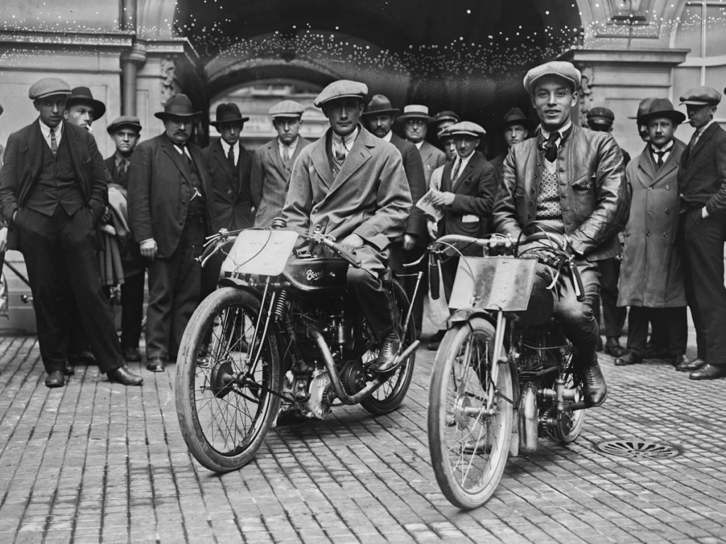 Glasgow Herald: For the third successive year England has gained the International Trophy of motor cycling. This, with her success in 1913, makes her fourth victory in what is essentially the motor cycle challenge of the world. She was challenged this year by Germany, who had nominated two teams of her strongest riders, but by the middle of last week one of the latter had lost all its three members, and the other, one. England’s two teams successfully completed the road course of 777 miles, but during the speed test held on Brooklands track on Saturday one member of England’s A-team was put out by a valve breakage. England’s B-team, comprising Philip Pike (Norton and sidecar) of Plymouth, J Lidstone (James) of Birmingham, and Graham W Walker (Sunbeam), of Wolverhampton had dropped only 12 [out of 300] points in all, and thus achieve a noteworthy victory. In the contest for the International Vase, victory went to the same English team. The Holland B-team, comprising J Moos, Wm Smit and HM Vintges, all on BSA machines, who had lost 21 points, were second, while third place was secured by the English Ladies’ team, consisting of Miss L Ball (James); Miss Marjorie Cottle (Raleigh); and Miss Edith Foley (Triumph), who had lost 25 points. This is the first occasion on which a ladies’ team has been nominated for an international motor cycling contest, and the result is a clear indication of the tractability of the modern motor cycle. The result is no less a tribute to the riding skill and pluck of the lady competitors. The Auto Cycle Union Centre Championship was won by the South Midland A-team, composed of TG Meeten (Francis-Barnet), L Welsh (OK-Bradshaw), and WH Hardman (Matchless and sidecar). The Midland A-team and the South-Western teams tied for second place with 10 marks lost. Of the 113 competitors, 76 gained gold medals, eight silver medals, while seven had, by forfeiting more than tghe maximum points, failed to qualify for an award. Seven ladies started, six completed the course, of whom four gained gold medals. In all, 22 completed the course without losing a single mark.”