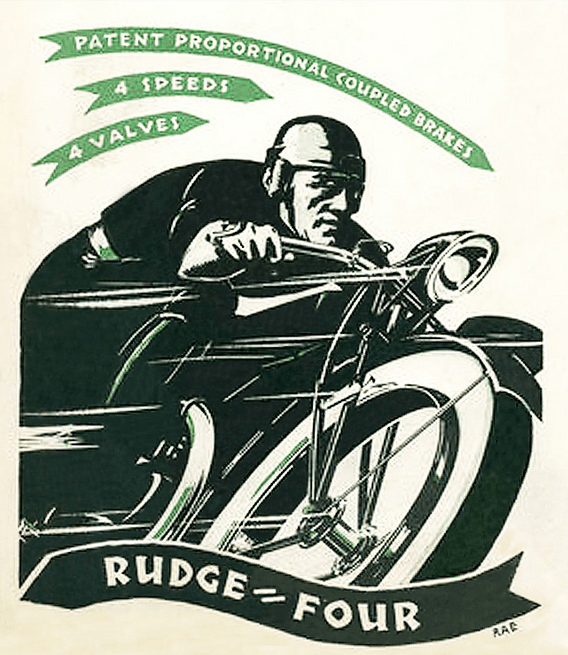 “THE RUDGE-WHITWORTH 1928 PROGRAMME shows that three different types of the 499cc machine will be marketed. These are the Standard at £46, the Special at £55, and the Sports at £60. An electric lighting set costs five guineas extra…the Special and Sports have ben entirely redesigned. Four valves are used as in the past, but the exhaust ports are not set at 90° instead of being parallel, and long pipes run to silencers which are located one on each side of the rear wheel…The wheels now have internal expanding brakes of large [8in] diameter and width, proportional coupled together as in the past, so that one pedal applies both together…the braking surface is very much larger than is found on most motor cycles. The frame has a special double top tube…on which fits a handsome saddle tank finished in black and gold. The oil and petrol tanks are now combined…The specification includes a four-speed gearbox…and twistgrip or lever control to the carburetter…The Standard machine is capable of 60mph, the Special of 70mph and the Sports of 85mph, speeds which should satisfy the most enthusiastic of ‘roadburners’.”