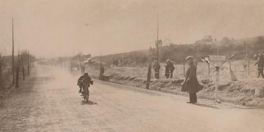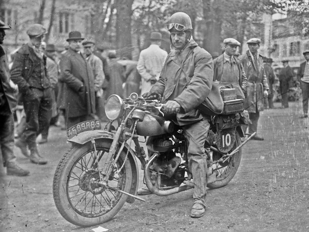 but produced no passport. After this I tried telegrams, but this meant collecting the postmaster, an elderly but charming man, who was usually to be found on a raft a hundred yards or so out of the municipal bathing place, where he disported himself in the company of a bevy of Italian belles, each of whom could have got at once into the front row of Ziegfeld Follies. While he swam hack to dispatch my messages, I deputised for him on the raft; but he sent off those telegrams with unwonted despatch. Friday came, and still no news; but then friend postmaster (who had begun to wonder whether I was a visitor or a visitation) produced a map by which it appeared that it was possible to get to Geneva, the finishing point of the Trial, without leaving Swiss soil, providing—and here was the rubs—one was prepared to go back through Locarno, Bellinzona and Airolo, reclimb the St Gothard Pass, go over the Furka Pass and the Rhine-Rhone watershed, and down the valley of the Rhone.He said the road was easy; very easy, in fact. Reflecting that what Hilaire Belloc had done on foot (though I suspect him of cutting the comers) I should he able to do on a perfectly good motor bicycle, I set off on Friday afternoon. The passes were memorable chiefly for being lonely and cold. One Morris-Cowley appeared, boiling furiously. When I called, ‘Hello, GB!’ the occupants looked down their noses most orgulously, and generally intimated that they were very superior persons. The following day I picked up the Trial at Martigny, and pleasant it was to overtake the last competitor. Apart from a miraculous draught of papers by the ACU, one final impression remains: a memory of the speed trial, as seen from the seat of Edge’s Rudge sidecar, which I occupied for the hour in place of his gallant lady passenger (his mother)—an experience that left one with a higher opinion of her courage than ever.”—’DION‘