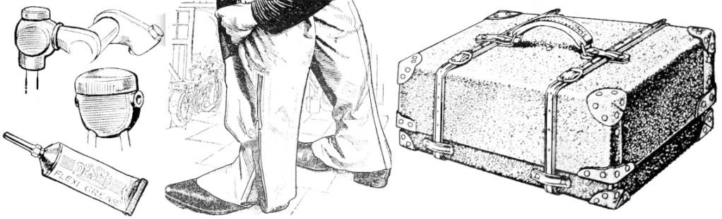 AMID THE NEWS AND TECHNICAL REPORTS The Blue ‘Un had a taste for features that ranged from whimsical to downright silly. They often appeared around Christmas time but the two that follow were culled from January; they are, I suggest, space fillers written in advance to give the staff time to recover from the Christmas merriment (we did the same thing when I worked for Motor Cycle Weekly in the seventies and eighties). They’re easy reading and serve as a light hors d’oeuvres for a busy year on two and three wheels—and, in Ariel’s case, floats. The first, under the heading ‘In the Not-so-old days’, offers “Reminiscence of Road Adventures Experienced by a Rider of Today”, by Centaur…