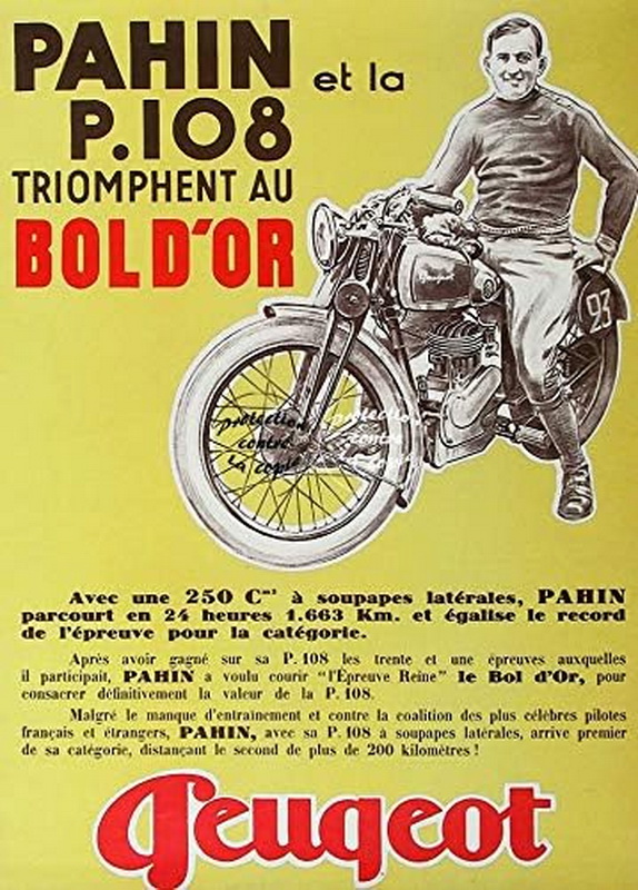 ROBERT PAHIN WON the 250 class of the Bol d’Or on a Peugeot 108 (his brother Marcel was runner-up in 1934). Peugeot lost no time in advertising his win: “With a side-valve 250cc, Palin covered 1,663km in 24 hours and equalled the class record for the event. After winning all thirty-one races in which he took part on his P108, Pahin wanted to race the ‘premier event’, the Bol d’Or, to definitively establish the value of the P108. Despite his lack of training and against a coalition of the most famous French and foreign drivers, Pahin, with his side-valve P108, came first in his class, beating the runner-up by more than 200 kilometres!” The biggest bike in the Peugeot range was the 350cc P107 350 popularised by the epic runs made by Robert Sexé. To compete more effectively with bigger British imports Peugeot launched a brace of 500s at the Paris Show: the ohv 515 and the sv 517. They were Peugeot’s first 500s since 1920. The pre-Paris Salon press release promised: “Emphasis is placed on the qualities of power and performance obtained without flexibility, reliability and comfort being diminished.” They both featured unit construction. The 517 came with a three-speed transmission but the long-stroke (81x96mm) 515 got Peugeot’s first four-speed box with foot change. In its first year a 515 went to Montlhéry to set a 24hr world record at an average 118.747km/h.