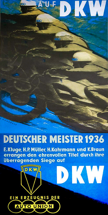 “THE GERMAN MOTOR cycle champions for 1936 have been adjudged as follows: 250cc, Kluge (DKW); 350cc, Fleischmann (NSU); 500cc, HP Muller (DKW).”