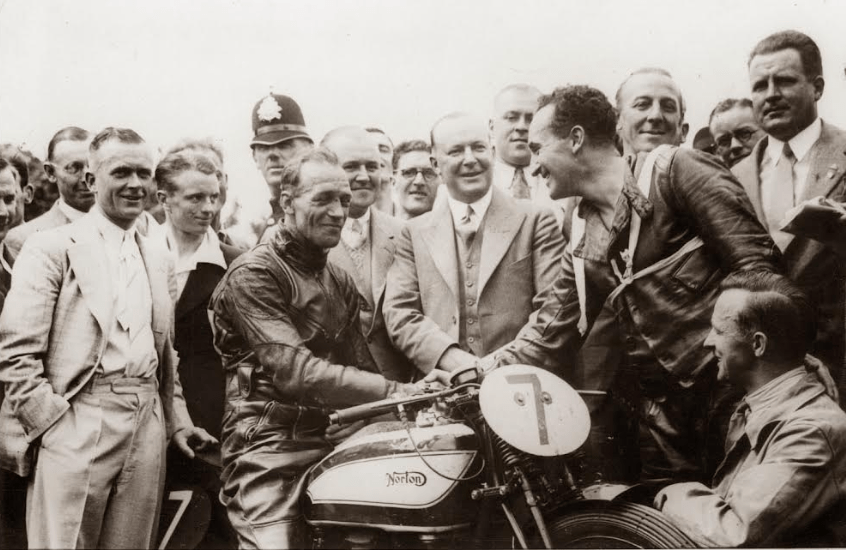 second to Freddie Frith, with Crasher White third. This would have given Norton a 1-2-3 victory. As it was, they had to be content with first, second and team prize. The results of the Lightweight race [delayed for a day because of mist and fog on the mountain] cheered us up a bit. Stanley Woods on the German [three-cylinder supercharged] DKW led on the first two laps, but in the third Lap Bob Foster (New Imperial) overtook him, only to lose his place on the fourth lap. In the fifth lap the positions were the same, with Stanley 14sec ahead. On the sixth lap Bob Foster overtook the Irish-German combination again and led by 35sec. Then Stanley retired near The Bungalow on the last lap [with an ignition problem] and Bob regained the Lightweight Trophy for Britain His speed of 74.28m.p.h. was nearly 3mph faster than that of Stanley’s Guzzi the previous year.” Foster owed his win to a gamble: company founder and MD Norman Downs cancelled a scheduled pitstop to take on oil. The New Imp had a notorious thirst for oil; Foster didn’t call his mount the Flying Pig Trough for nothing. It was the last TT win by a British 250 and the last solo TT win by an ohv engine. Foster, by the way, was a newlywed; his bride’s reaction to her TT honeymoon destination is not recorded. Tyrell Smith, riding for Excelsior, was runner-up and Woods German DKW team-mate Geiss was 3rd—if Woods’ Deek had lasted a few miles longer…RESULTS: Senior: 1, Jimmie Guthrie (Norton), 85.8mph; 2, Stanley Woods (Velocette); 3, Freddie Frith (Norton); 4, John H White (Norton); 5, Noel Pope (Norton); 6, C Goldberg (Velocette); 7, WT Tiffen Jnr (Velocette); 8, Jock West (Vincent-HRD); 9, JC Galway (Norton); 10, Bill Beevers (Norton). Junior: 1, Freddie Frith (Norton) 80.14mph; 2, John H White (Norton); 3, Ted Mellors (Velocette); 4, Ernie Thomas (Velocette); 5, Jimmie Guthrie (Norton); 6, Oskar Steinbach (NSU); 7, Heiner Fleischmann (NSU); 8 D Hall (Norton); 9, Harold Daniell (AJS); 10, George Rowley (AJS). Lightweight: 1, Bob Foster (New Imperial) 74.28mph; 2, HG Tyrell Smith (Excelsior); 3, Arthur Geiss (DKW); 4, DS Fairweather (Cotton); 5, Charlie Manders (Excelsior); 6, EW Corfield (Excelsior); 7, Harold Hartley (Rudge); 8, Svend Aage Sørensen (Excelsior); 9, HC Lamacraft (Excelsior); 10, JC Galway (Excelsior). Competitors came from Belgium, Denmark, France, Germany, Spain, Sweden, the USA, New Zealand and South Africa.