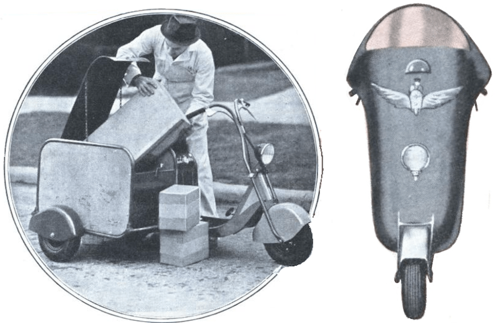 IN THE UK TRADESMAN’S sidecar outfits were losing ground to vans but in the USA Harley Davidson and Indian were doing a steady trade in 750cc sv commercial trikes, respectively the Servicar and the Dispatch Tow.