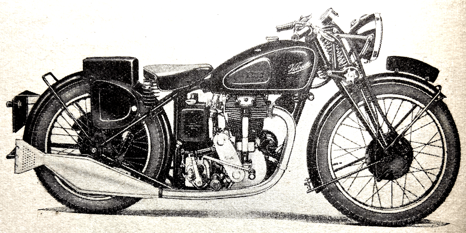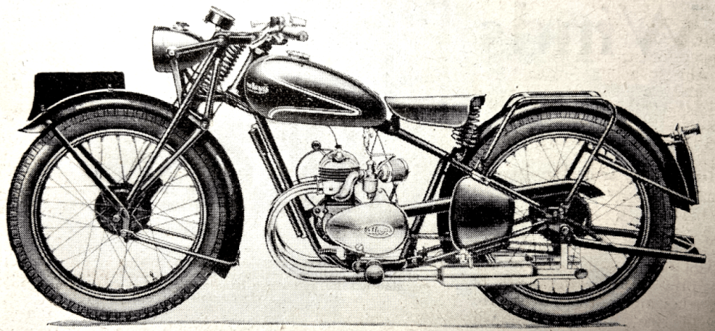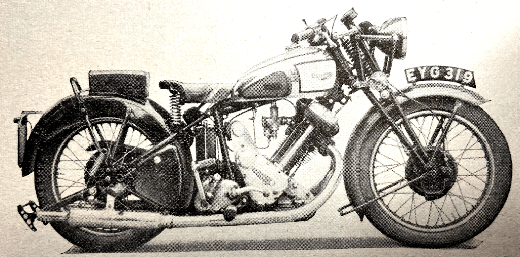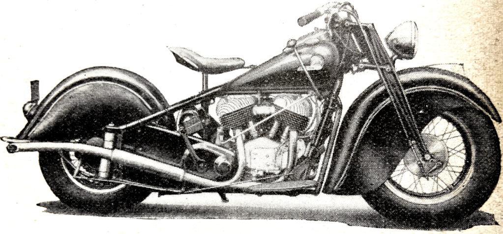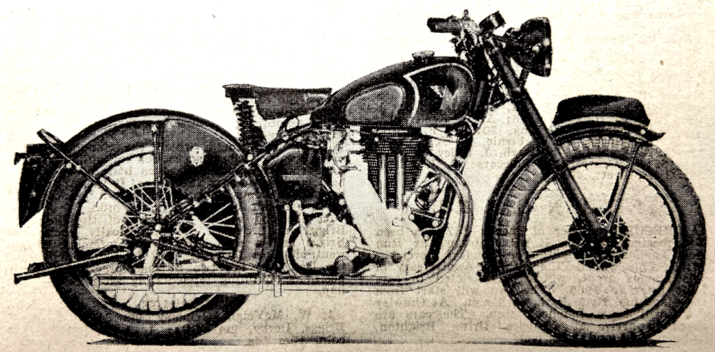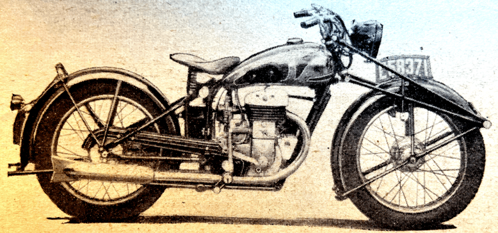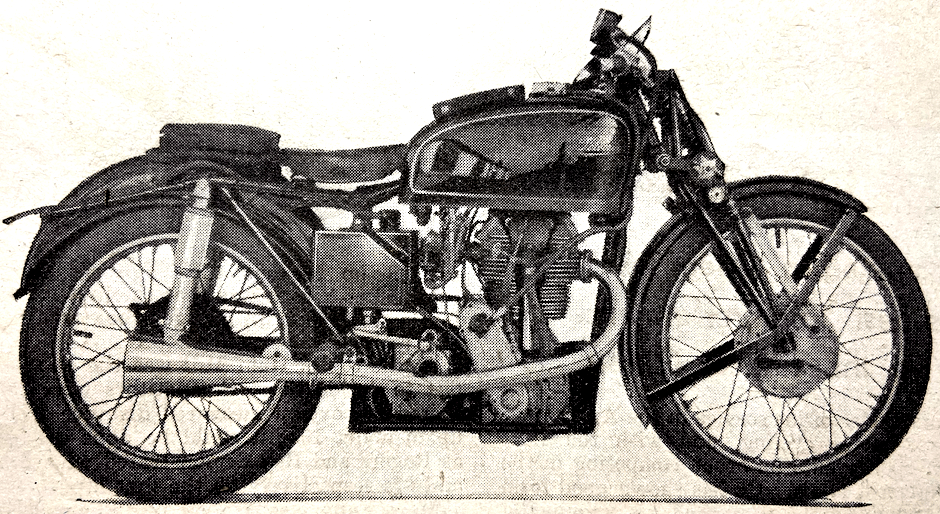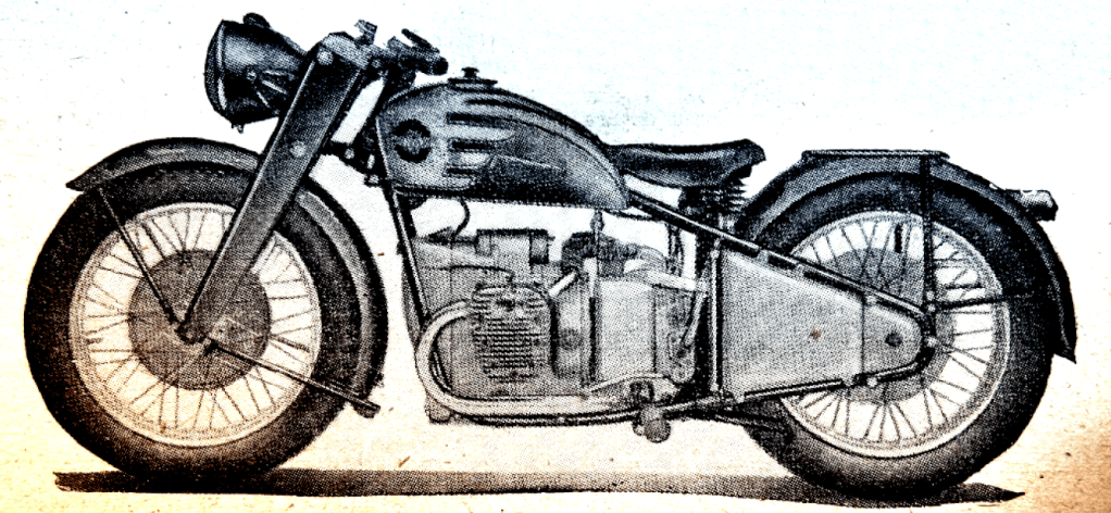 “A READER-CRITIC laments the concentration of the industry into so few hands as tending to evolve a certain monotony in design. He sadly recalls what he names ‘the ingenious ‘twenties’, when Dunelt, Barr and Stroud, Wooler, and countless others, tilted at convention, and perorates with, ‘Oh, for another AA Scott, to give us an engine with the quiet hiss of a soda-water syphon!’ Commerce tends to promote the survival of the fittest from a purely practical standpoint. But is it ever so distantly true to speak of a monotonous uniformity? The Scott is not dead. A transverse-twin Douglas is leaping from its nest. The Squariel, the Sunbeam twin, the cobby Rapide HRD, the Triumph, BSA and Ariel vertical twins, the Flying Fleas, the autocycles and others are with us. Remember, too, that under quite fantastic handicaps in respect of tools, labour and materials, many makers are compulsorily waiting to launch new designs.”