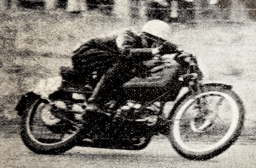 “AFTER A LAPSE of seven years, the Ulster MCC staged its famous road race over the Clady circuit last Saturday. The race had a different name and a different course, but there was enough of the former Grand Prix spirit in the air to suggest that probably by next year the event will regain all its past glories. The new circuit turns to the right at Nutt’s Corner on the straight between Ballyhill and Thorn Cottage and leads up to Muckamore by way of Tully and Killead Bridge. From Muckamore the seven-mile straight to Clady Corner, one mile from the start, is included. The resulting 16½-mile circuit was thought to be as fast as the 20½-mile circuit used for the Grand Prix which in 1939 was lapped at over 100mph. But practising indicated that the halving of the fast straight from the start at Carnaughlis to Thorn Cottage, by the turn at Nutt’s Corner, and the comparative acuteness of the many bends in the Tully, Killead and Rectory area had resulted in the new circuit being appreciably slower than the Grand Prix circuit. Even if an entry of the calibre usual in pre-war days had been competing, it seems doubtful whether a ‘century’ lap would have been reached. Saturday’s race was notable for the retirement of all competitors except one in the 500cc class, and for the excellent riding of VH Willoughby, who won the 350cc class at a higher speed than the