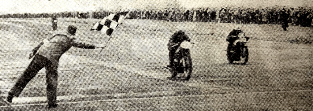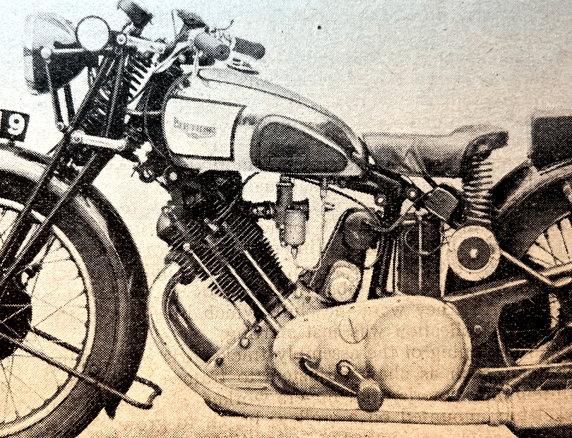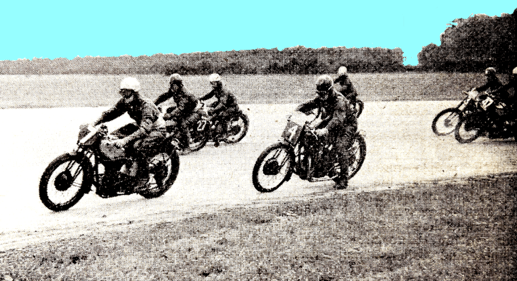 BRANDS HATCH, STILL A grass track venue, hosted an Anglo-Irish match courtesy of the Bermondsey MCC. England’s honour was upheld by the likes of Eric Oliver and Jock West; Irish stars included Ernie Lyons, Artie Bell and Rex McCandless, who was using the swinging-arm frame he’d designed with his brother Cromie. The English scraped a 19-17 victory but the McCandless frame would win renown as the Norton Featherbed.