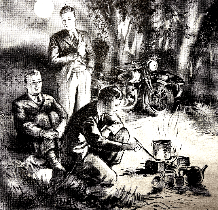 “‘SOME PUT THEIR TRUST in chariots, and some in horses’—so sang King David in the twentieth Psalm perhaps 3,000 years ago, and I mention it just to show that the love of the road (or its ancient Eastern equivalent), which we look upon as a comparatively modern cult, is in reality one of the earliest forms of enthusiasm on earth. Possibly the one earlier enthusiasm connected with locomotion is that of sailing, for it will be recalled that Noah fell for this particular pastime rather pronouncedly. But seriously, is there anything in modern life more intoxicating (in a strictly underproof sense) than being astride a lively machine, with 12 hours and the open road in front of one, and—since I write of the halycon days of peace and plenty, shortly to hold good again—any number of petrol stations available wherein can be purchased an unlimited supply of the essential juice? Add to this the attractions of blue skies, refreshing breezes and open country, and it is not surprising that there are some half-a-million of discerning folk who ‘put their trust in motor cycles’.”