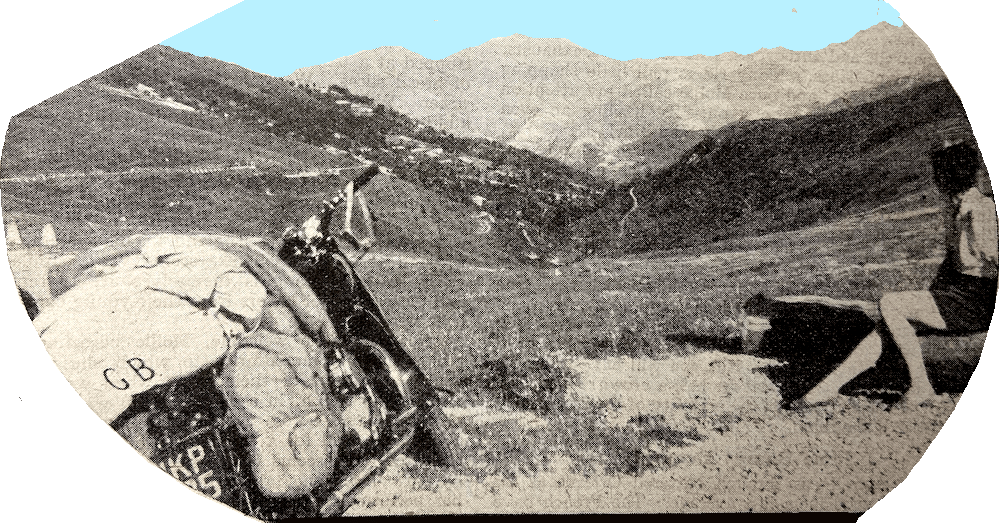 “THE PILE OF CLOTHES which Mollie had placed on the bed would have bulged a cabin trunk. Each piece had to be bargained over; each what-not, she claimed, was indispensable. It took endless haggling and persistence to reduce the mound by half. The carrier aft the pillion and the panniers slung well back were built and designed by me to simplify, even to avoid, all baggage problems. Alas! Now they were packed to bursting point, and horrid little parcels done up in brown paper were tied to the straps. Then came the final indignity when Mollie produced my old HG respirator bag full of tinned food. Actually, my ‘nose-bag’, as it became known, later proved invaluable as a pocket for camera, documents and snacks. Hetty, our new 500cc Matchless, barely run in with but 1,000 on the clock, looked like a gipsy caravan. Kit, tools, fire-extinguisher and ourselves touched nearly 4cwt. We set off on a typical late-July morning, and with the squalls of rain and hail stinging our faces I reckoned that she might slew enough to become unmanageable. But no, she was almost as light and peppy as when I rode her alone; and it was this virtue of light handling which made our trip such a complete success. We travelled on 12 of the 17 days when we were abroad, and during this time covered well over 2,000 miles on surfaces which make the Lea Bridge Road a dance floor by comparison. On two occasions we climbed nearly a mile up, with the snow not far above, and then down through a belt of heat where we could have fried the oft-quoted egg on the macadam—and a couple of rashers besides. From where we stood we could have spat into Spain; we bathed in the Mediterranean and chatted to guards on the Italian frontier. But let me make it clear that we were not out to test our endurance or the machine’s, nor to hunt records, but to have a holiday—to see old friends and places, and to relax as well. After the usual business at Calais of producing mounds of documents, signing and declaring, and being shown around, we set off on the first hop with some companions of the crossing. There were a couple on a Vincent and a rider of a 1928 Norton aiming for Switzerland. We let the Norton lead over the cobbles and through the ruins of the port. Hetty purred as she cut through the wind that blasts over the bare hills of the Normandy coast. Building is going on apace, but there is still devastation everywhere, and most of the bridges are temporaries or incomplete. The rusting remains of Tigers, Churchills or Shermans now look almost as much a part of rusty past history as the Crimea guns in Maidstone! I watched our leader bouncing ahead over the cobbles of Boulogne, then fast again over the stretch to Montreuil, where the pavé was more shattering than ever. In the shadow cast by the falling sun I could see my front wheel bobbing up and down in fascinating fashion. ‘These Teledraulics are marvellous, just like coasting down from Epping,’ I shouted back to my passenger. ‘But I’m not sitting on your handlebars!’ Mollie groaned. Then came the time when we waved good-bye to our
