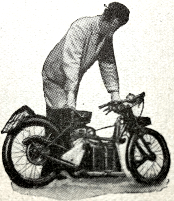 “I WAS VERY INTERESTED in Brigadier TCW Bowen ‘s article, ‘Riding Position for Solo Work’ in which he mentions danger and discomfort. There will always be these factors while riders are forced ,to adopt the ‘monkey-up-the-stick’ position, and consequently get cramped and stiff and dither about feeling for the brake in an emergency. Out of a total of 20 machines, there were two only on which I could sit and ride comfortably and be sure of stamping rapidly on the brake. They were an Indian Scout and a Ner-a-Car. Both these machines had footboards well forward and ample leg-room unimpeded by kick-starters, gear boxes, battery cases and oil tanks. Most of the weight was taken on the saddles, which left the legs and feet free to move about and ready for an emergency. Incidentally, the saddle of the Indian Scout was mounted on a spring seat pillar and could be adjusted backwards and forwards and vertically. With the exception of speed, the modern machine is basically the same as the machine of 1912. Its high saddle tank makes it more top heavy, and its weather protection is still nil. How can it be reasonably safe? What impressed me during the war was the ease of handling and controllability of the American twins used by the Americans and Canadians. In spite of their immense weight and power they were as easy to handle in traffic as the smallest lightweight. Makers here might do well to study the American layout regarding comfort, handling, and weather protection.