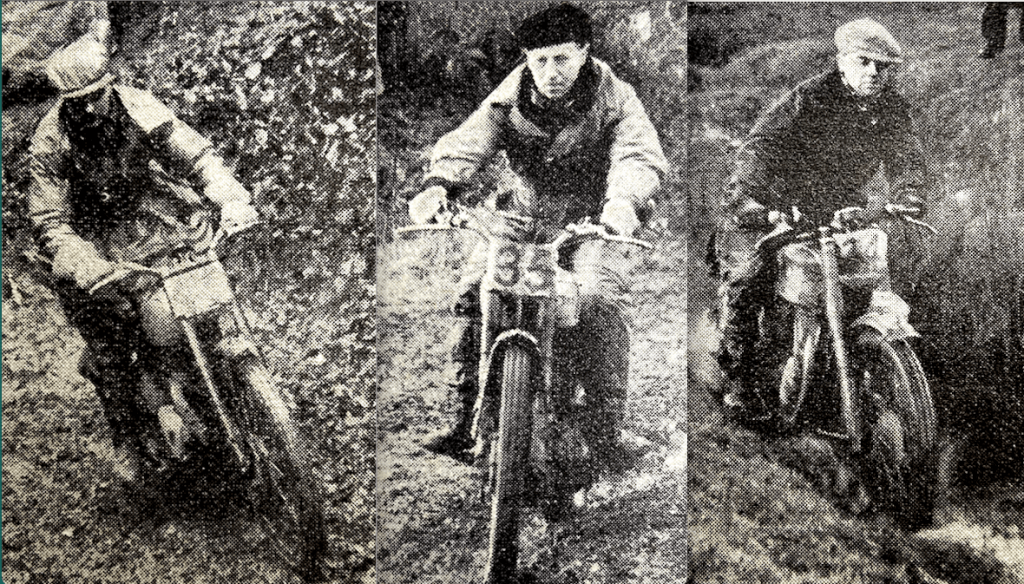 “ALTHOUGH NOT STRICTLY of the ‘North’, being more truly of the East Midlands, the Bemrose Trial nevertheless has a distinctly northern flavour. The Derby &DMCC takes the Bemrose route well up into the Peak District, and since that ‘North’ which comprises West Yorkshire. East Lancashire and East Cheshire is rather starved in the matter of classic open trials there is always a good ‘local’ entry both from those quarters as well as from the many clubs in the Derby and Nottingham districts. Hence the entry list of 160 last Saturday—a total that could easily have been exceeded had Mr Secretary Fred Craner dared to have accepted all who offered. But because it is not possible to get enough marshals and observers on a Saturday morning the start cannot be before 1230pm and the available daylight precludes the acceptance of a bigger number of competitors; as it was, the intermediate time checks were eliminated in order to save delay. But with the best will in the world, time loss extended the string of riders. A minute or two here, a quarter of an hour there, and a cumulative delay became apparent. The early members were on time according to programme at the many observed sections, but the later the numbers the later their appearance and the longer their passage through any one section. At the finishing point at Hartington O/C Craner was getting quite worried as the day went on. Messengers were sent out. ‘Could this or that hill be washed out?’ And each time the answer came back ‘No’, because already some of the early number. had been up and had been credited with clean performances. So it had to be. Only the last section of all, half a mile away from the finish, was cut out. And the upshot was that most of the late numbers climbed Pilsbury when the light had gone and they could not clearly see the path to follow. Naturally they finished well after the time when lights were put on and many without lamps were in a quandary about getting home. There was a run on the available stock of pocket torches in the village garage at Harlington. The contingent from West Yorkshire, always ready to throw a party. were speculating where to carry out such a project, while a team from Cambridge were speaking bravely of riding through the night to that home of learning. Nobody could quite weigh up why the lateness had crept in. Delays on any one hill had not been excessive, except perhaps at Hunger, early on. Route marking was excellent and marshalling on observed sections was generally expeditious. It just seemed that the entry was too big for the time allowed and tint the moving finger moves, and keeps on moving on. Starting from Cromford, near Matlock, on a bright and sunny, the prospects were only marred by the sight of snow on the hill tops and the thought that the deeply frozen ground might be thawed to a fairly treacherous state. The first section, Dethick Lane, confirmed the dread. Its mixture of semi-solid slime and rocks proved difficult. Fortunately for the many who had to foot, and much to the annoyance of the few who were clean, no observers turned up, so both failure and success went unrecorded. Twelve miles from the start, Hunger Hill, at Holymoorside, near Chesterfield, was reached. Hunger is not perhaps no difficult as it used to be, but the acute left bend on a shop gradient, with step-like rock ledges ‘running away’ from the line of travel, provide a fine test of steering control and engine pulling power from low revs, because the steps are too deep to take at speed with any certainty, although an occasional rider, if the luck is with him, may make a fast ascent. One thing differing from prewar trials was the outstanding superiority of telescopic forks in dealing with a rock staircase!”