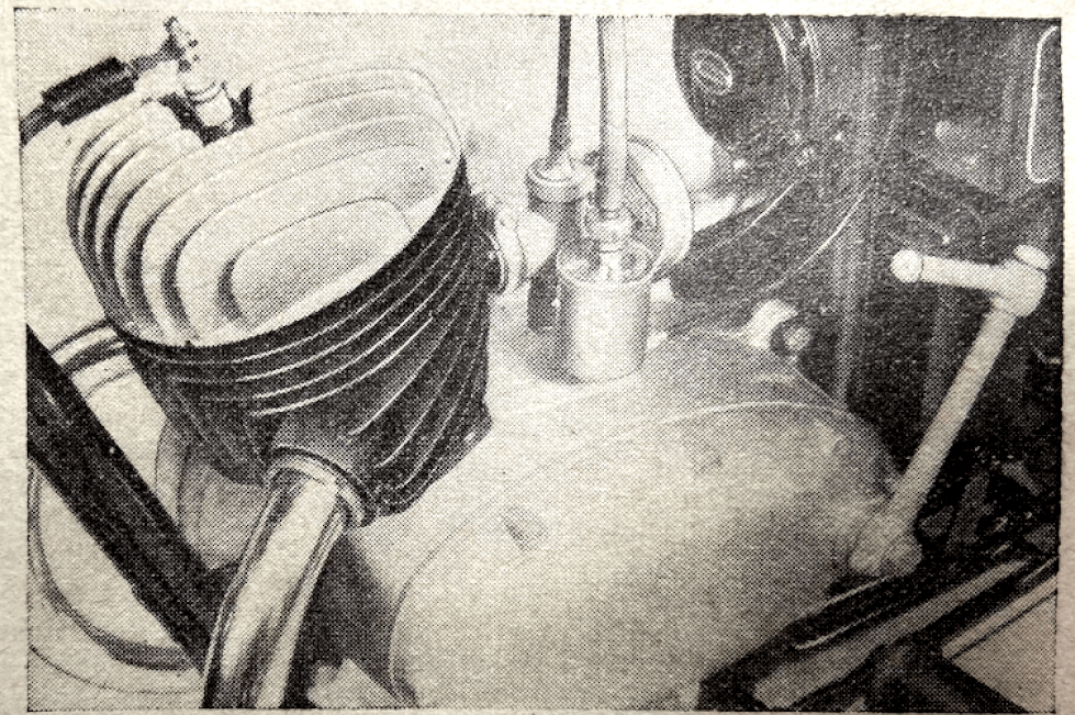 in its conception that one marvels at it the more. Here is a rorty machine if ever there was one. ‘A thrilling, breath-taking beastie,’ I dubbed it. What Mr Kirk has done, you may recall, is to fit a blower of the positive-displacement type with a capacity of 560cc to his Stott which, at the time of my visit, had a 596cc engine. The kick-starterless machine, I found, started without difficulty; it two-strokes and does not four-stroke and is mild enough to be taken through traffic and winding lane without any difficulty. But open the throttle and the mild manners disappear with the increasing revs. The power builds up and builds up, and one has a sensation totally different from any I have had previously or since. And Mr Kirk told me that, with all this, he had had reliability. On trying the machine I wondered why more folk had not worked on similar lines; then I thought of the years Mr Kirk has been busy with two-strokes and the time spent before he developed this apparently simple layout. Shall we go from one extreme to the other? Over the year I have covered some thousands of miles on lightweight two-strokes. Often I have had my 1,000cc Ariel Four and a 125cc James or Royal Enfield out on the same day. I enjoy these Flying Fleas and have bought one as a runabout—as a sort of tender to the big machine. I shall not use it for long-distance work, but it will be useful for many a short journey and for rough stuff. Incidentally, I have a 40-tooth rear chainwheel which will give me a bottom gear of 25.7 to 1, which should be amusing in the rough, though with a top gear of as low as 8.9 to 1 I shall not want that ‘rough’ to be very far from home. Where these machines score is that one can take them out much as one would a bicycle. They are always ready, it seems, and cover over 100mpg even with the hardest driving. When the roads are treacherous there is nothing to equal these really light lightweights. As you know, they will average 30 and more miles an hour, and that means on runabout work that there are very few minutes’ difference between these machines and big ‘uns. They do not two-stroke so well as they might, and I consider that such machines, for runabout work, need built-in legshields that harmonise with the design. However, you will gather my feelings about them from the fact that I have invested in one of them—have done so after experience which now amounts to well over 6,000