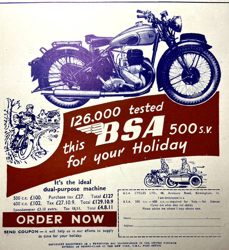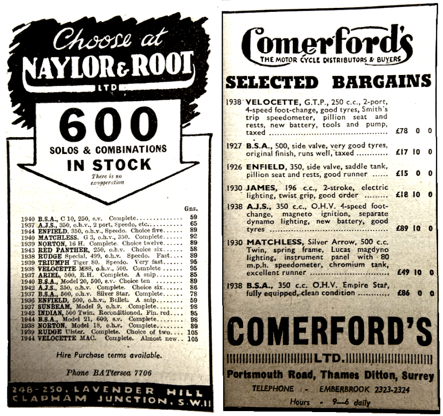 “THE DEMAND FOR motor cycles is so keen in some country districts that an auctioneer claimed that he could get double figure bids for ‘anything with two wheels which would make a ticking noise’!”