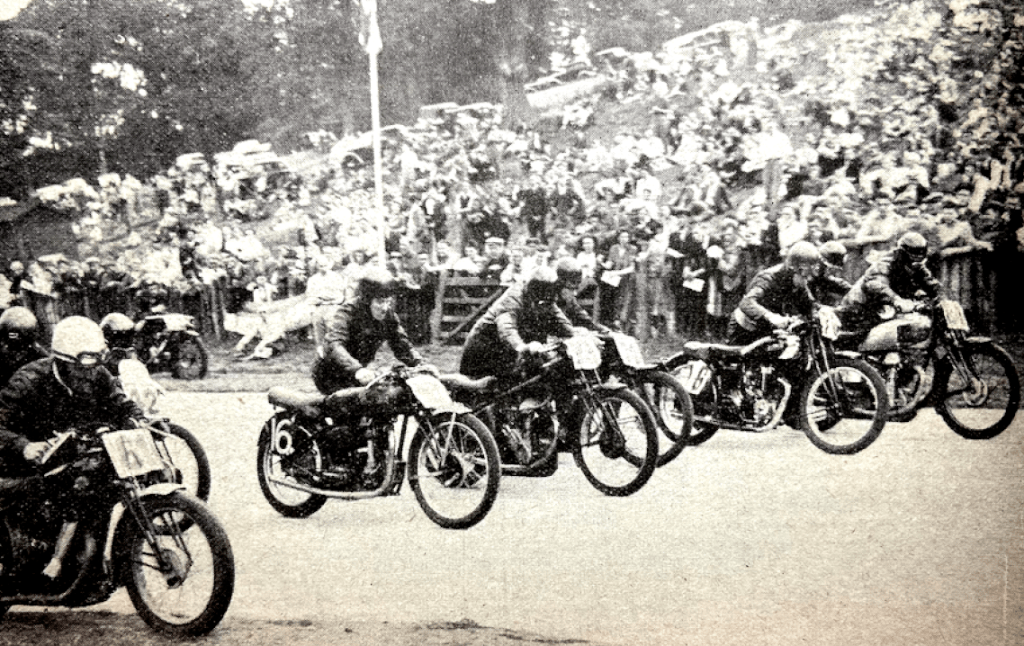 “‘WE HAD OUR FIRST SIGHT of a real post-war motor cycle at the Leinster trial, when Cromie McCandless turned up on a 350 Triumph Twin, complete with hydraulic plunger forks,'” reports the Dublin &DMCC.”