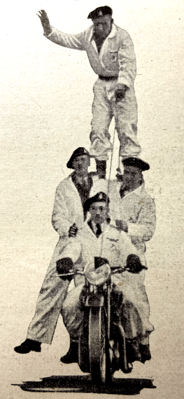 “WEST AFRICA HAS HAD its first scramble, thanks to that old-time TT rider, Tommy Spann—now Colonel Spann. There were 97 European and African entries from the Gold Coast, Nigeria, Sierra Leone and the Gambia. Primarily it was an Army event, but the Royal Navy and the Gold Coast Police entered two teams each. Four laps of a l¾-mile course were covered…An all-African team, Nigeria’s ‘B’ team, made the best team performance, while Gold Coast won the Inter-Colony aggregate shield. Best individual performance was made by Capt JW Nelson (Sierra Leone), while Lieut W Blake, RN (Sierra Leone) made best time in 11min 36sec. The best African performance was by Sgmn Jabita (Nigeria). When distributing the awards, Lt-Gen Brocas Burrows, C-in-C, West Africa, stated that the event would be held at least once a year and that French competitors intend to take part next time.”