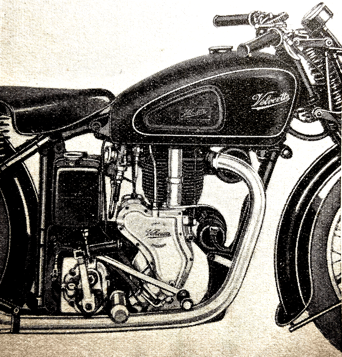 “IT WILL GLADDEN the hearts of enthusiasts to know that Velocette machines are available again. Not only are there the ever- popular high-camshaft ohv models and an ohc KSS, but also there is to be the KTT racing machine. The last, it is true, will not be ready till 1947, and will be produced only in limited quantities, but the fact remains that there will be a model for the racing man. The high-camshaft push-rod-operated ohv models are the MOV of 248cc, the MAC of 349cc and the MSS of 495cc. A similar principle of design is followed in these engines. Steel flywheels are used in a sturdy crankcase which extends high up to surround the deeply sunk cylinder. Long bolts screwing directly into the crankcase retain the cylinder and cylinder head. Compression ratios are 6.5 to 1 for the MOV and 6 to 1 for both MAC and MSS…The cradle frame used for the MOV and MAC models differs from the pre-war design in that there is now at the base a large malleable-iron cradle lug which extends from the bottom of the front down tube to the gear box. The lug protects the base of the engine and gear box. and was in fact developed for the machines supplied to the Army during the war years. For the MSS there is a heavier frame with its easily recognisable characteristic—a vertical seat tube. All models have Webb parallel-ruler type forks fitted with hand-adjusted shock absorbers and with a steering damper. The front mudguard is deeply valanced and there is a very effective mudshield on the near side of the rear mudguard to protect the bottom run of the chain. Petrol-tank capacities are 2½ gallons on the MOV and MAC and 3½ gallons on the MSS. Other features are an oil-bath primary chain case, a sturdy prop-stand in addition to the rear stand, and an 8½-in head lamp with, of course, a twin filament main bulb and a handlebar dipper switch. Tyre sizes are 3.25×19 front and rear on MOV and MAC models; on the MSS the front size is 3.50×19 and the rear 4.00×19. The brakes on the two smaller machines are of 6in diameter and on the MSS of 7in diameter. Rear wheels are of the quickly detachable type. Famed throughout the world, the high-performance KSS model is one of the neatest overhead-camshaft designs ever produced…The slipper type piston gives a compression ratio of 7.6 to 1 with two plates under the cylinder barrel. With one plate removed the compression ratio is 7.95 to 1, or with no plates the ratio is 8.4 to 1. All models have the familiar black-and-gold Velocette finish; bright fittings are chromium plated, as are the wheel rims; the latter are polished on the bead flats and unpolished on the wells. Much sought after by racing men, the exceptionally successful 348cc KTT model will again be produced. These machines are hand built by specialists and are delivered to the rider ready for immediate racing. Essentially the 1947 KTT is a replica of the 1939 model apart from slight modification and cleaning up of the oleo-pneumatic legs forming the rear suspension. Demands for the KTT are exceptionally keen from all parts of the world and, as with other models, a proportion of the output will be exported.”