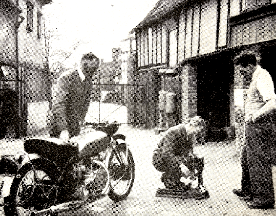 “WE HAVE HAD a good laugh in the office. It seems that on the way to the Southern Trial the previous Saturday ‘Torrens’ was forging ahead in the direction of Farnham—was climbing the long incline on the Hog’s Back side of the Guildford By-pass—when he heard the sound of another motor cycle coming up astern. ‘Ah!’ he mused. ‘A motor bicyclist is about to dust me up,’ and, without turning round or anything else to betray that he knew what was happening in rear, sent the Four surging forward from 55mph to something around 75mph. The noise of the other motor cycle receded. Later, ‘T’, knowing his pistons and cylinder block were still on the new side, throttled back to about 60. Again there was noise of a motor cycle. Torrens, without looking back, gave the wave-on signal, and a moment later was confronted by a grinning member of the Staff on a Norton. It was EA Sitwell. Dog eating dog…”
